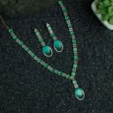 This stunning necklace set features a luminous sea-green drop stone, surrounded by delicate cubic zirconia accents. Perfect for any occasion, whether it's a festive celebration or a casual outing, this elegant ensemble enhances your traditional wear or modern outfits.