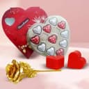 Ignite the spark of romance with our Romantic Bliss Gift Set! This carefully curated collection includes a magnificent golden rose, two enchanting love candles, and a delightful pack of 11 heart-shaped chocolates. Perfect for anniversaries, Valentine's Day, or any moment you want to celebrate love, this stunning gift will leave a lasting impression. Show your affection with this charming and thoughtful combination!