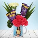 Romantic Choice of Personalized Mug Full of Mixed Carnations n Cadbury Chocolate