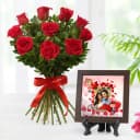 Romantic Combo of Red Rose Bouquet with Personalized Photo Tile