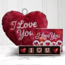 Surprise the one you love with online delivery of this romantic I Love You Combo Gift consisting of Heart Shaped Cushion with I Love You Handmade Chocolate N Love Card and make your bond stronger.