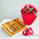 This gift combo includes: - 8 Red Roses Tissue Wrapped Bouquet - Assortd Dry Fruits Sweets (500 Gms) This gift combo brings together the timeless beauty of 8 red roses, wrapped delicately in tissue, with the indulgence of assorted dry fruit sweets (500g). The vibrant red roses symbolize love and admiration, while the luxurious dry fruit sweets offer a flavorful treat, perfect for celebrating special moments. This combination is an ideal choice for expressing heartfelt emotions while gifting a sweet surprise.