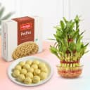 Sakhari Pedha from Chitale Bandhu Mithaiwale with 3 Tier Lucky Bamboo Plant