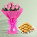Sending Sakhari Pedha (500 Gms) from Chitale Bandhu Mithaiwale with 10 Pink Rose Bouquet to your near ones. (Only Available at Pune)