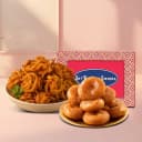 Indulge in a delicious pairing that balances sweet and savory perfectly. Our Badusha features flaky layers enveloped in a warm syrup, offering a delightful sweetness with every bite. Complementing it are crispy onion pakoras, which are spiced to perfection and fried until golden brown. This 500-gram combo—250 grams of each—makes it great for sharing at parties or for a cozy night in. Whether with friends, family, or just yourself, this flavor duo is sure to satisfy every appetite.