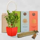 Show your appreciation for your mother with this Serenity and Wellness Gift Set, designed to promote relaxation and health. This delightful package includes a selection of Herbal Teas from Karma Kettle, featuring the harmonious blends of Chakra Tea, Moringa Tea, and Ashwagandha Tea (30 tea bags total) that provide various wellness benefits. To enhance her tranquility, the set comes with 15 premium Incense Sticks in a chic Jute Pouch, along with a Wooden Ash Catcher from Iris, perfect for creating a peaceful atmosphere. Adding a touch of nature, the charming 2 Tier Bamboo Plant represents good luck and positivity. Finally, the eco-friendly Reusable Gift Bag makes this a thoughtful and sustainable gift choice for any occasion.