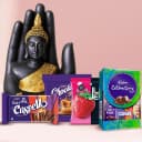 Make your dear one happy by sending this Showy Palm Buddha Statue n Cadbury Family Assortment with your special feelings. This Deepavali gift hamper contains: 1. Golden Handcrafted Palm Buddha Polyresin Showpiece (Black) 2. Cadbury Choclairs Gold Home Pack (27 Candies) (153.9 g) 3. Alpenliebe Juzt Jelly Strawberry Flavour Pouch (45 Pc, 166.5 g) 4. Cadbury Dairy Milk Crispello Chocolate Bar (35 g) 5. Cadbury Celebrations Assorted Chocolate Gift Pack (62.2g)