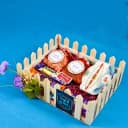 This is a gift of: - A Designer Kundan Rakhi (Design Code: KPRK8120) - Cashews 100g - Raisins 100g - 3d 5-star 42 g - Oreo Red Velvet 60g - Silk Hazelnut 58g - Roli Chawal Thali - Tray - All this will be packed beautifully in a Reuable Signature Outer Box Celebrate Raksha Bandhan with elegance and taste through this thoughtfully curated gift set. At the heart of the hamper lies a beautiful Designer Kundan Rakhi (Design Code: KPRK8120), radiating festive charm and tradition. Paired with indulgent treats like 3D 5-Star chocolate, Oreo Red Velvet cookies, and Silk Hazelnut chocolate, this set also includes 100g each of premium cashews and raisins to balance sweetness with health. Presented with a traditional Roli Chawal Thali and neatly arranged on a stylish tray, everything is packed beautifully in a reusable signature box for a memorable gifting experience.