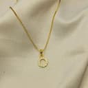 Introducing a sophisticated gold halo pendant that captures attention with its striking circular design embellished with radiant white stones. This piece radiates an understated elegance, perfect for any occasion. Its elegantly crafted open center adds a sense of airiness, making it ideal for both everyday wear and special events. The chic round silhouette sits beautifully on the neckline and pairs seamlessly with a stunning gold chain, enhancing both formal and casual wardrobes.