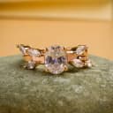 This enchanting ring showcases a stunning oval cubic zirconia at its center, embraced by radiant marquise-cut cubic zirconias that amplify its elegant charm. An ideal accessory for the modern woman who values grace and style.