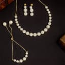 This gift box contains: - AD Studded Choker Necklace - A Pair of Earrings - A Bracelet - A Ring Elevate your style with our Sparkling AD Jewellery Gift Box, a stunning collection of accessories designed to add a touch of glamour to any outfit. This exquisite set includes a studded choker necklace that exudes sophistication, a pair of dazzling earrings that catch the light beautifully, a delicate bracelet that adds a subtle sparkle to your wrist, and a chic ring that completes the look with a touch of elegance. Each piece is meticulously crafted with high-quality gemstones that shimmer and shine, making this set a must-have for any jewelry lover. Whether youre dressing up for a special occasion or looking to elevate your everyday ensemble, this Sparkling Gemstone Accessories Gift Set is the perfect choice. Treat yourself or surprise a loved one with this luxurious collection that is sure to make a statement wherever you go.