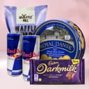 Gift your dear ones with Sparkling Cookie Combo so that they feel very special on the day of Christmas. This refreshing yet appetizing combo contains 2 Cans of Red Bull along with a Box of Danish Butter Cookies by Royal Dansk, Cadbury Dark Milk Chocolate Bar (70g) with a Waffle Mills Waffle Chocochip (80g).