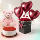 Spectacular Mixed Roses n Love Balloons in Black Box with Red Velvet Cake n Teddy