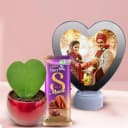 Spectacular V day Gift of Personalized Photo Heart Lamp Clock with Hoya Plant n Mousse Chocolate