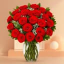 This arrangement is made of: - 24 Dark Red Roses - A Glass Vase Gift your loved ones these splendid Two Dozen Dark Red Roses in a Glass Vase and incorporate happiness into their lives.