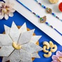 This is a gift of: - Set of 2 Kundan Rakhi by Rakhi Sutra (SET2-04) - Kaju Katli (250g) - Complimentary Roli Tika N Chawal - Complimentary Message Card with Free Rakhi Celebrate Raksha Bandhan with this exquisite gift set featuring a set of 2 Peacock Kundan Rakhis by Rakhi Sutra, symbolizing elegance and tradition. Indulge in the delightful taste of 250g of Kaju Katli, a cherished traditional Indian sweet. Complete the ceremonial rituals with complimentary Roli Tika N Chawal, and express your heartfelt wishes with a complimentary message card included free of charge. This thoughtful combination of beautiful rakhis, delicious sweets, and traditional elements is the perfect way to honor and celebrate the cherished bond between siblings on this auspicious occasion of Raksha Bandhan.