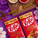 This is a gift of: - A Floral Kundan Rakhi by Rakhi Sutra (PRRK8089Y) - A KitKat Rich Chocolate Coated Wafer (50g) - A KitKat Caramel Chocolate Coated Wafer (50g) - Complimentary Roli Tika N Chawal - Complimentary Message Card with Free Rakhi Celebrate the sweetness of sibling love with this elegant Rakhi combo featuring a Floral Kundan Rakhi by Rakhi Sutra (PRRK8089Y). Designed with intricate detailing and vibrant colors, the rakhi adds a touch of tradition and charm. Paired with the indulgent duo of KitKat Rich Chocolate and KitKat Caramel Chocolate Coated Wafers (50g each), this set blends heartfelt emotion with delicious treats. With complimentary Roli Tika and Chawal and a message card to share your love, its a perfect gift for a memorable Raksha Bandhan.