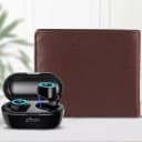 Stylish Mens Leather Wallet with PTron Bluetooth Earbuds
