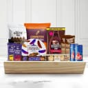 Render happy moments to your loved ones with this Superb Snacky Delight Xmas Hamper and frame it forever in your memory and heart. This Xmas Hamper contains: 1. Waffle Chocolate Chips (80g) 2. Cornitos Nachos (60g) 3. 2 Cold Drink Can 4. Chocolate Syrup 5. Kravour Butter Cookies (120g) 6. 2pc Yoga Protein Bar 7. Dairy Milk Crackle 8. Dairy Milk Fruit n Nut 9. 2pc Snickers 10. 4pc Ferrero Rocher 11. A Wooden Tray.