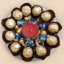 **Treat someone special to a delightful surprise! This exquisite gift set combines decadent Hershey's Kisses Cookie 'n' Cream chocolates (2 packs of 33g each) with luxurious Ferrero Rocher chocolates (11 pieces). To set the mood, we've included calming aroma candles and a chic decorative plate. Perfect for birthdays, anniversaries, or just to say 'I care'. Make a lasting impression with this delightful combination—order now and create unforgettable memories!