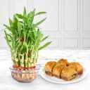 Surprise your loved ones with the perfect balance of sweetness and serenity! This wonderful gift features scrumptious Desi Baklava from Sangam Sweets alongside a charming 3 Tier Lucky Bamboo Plant. Ideal for celebrating special occasions like birthdays or anniversaries, or simply to brighten someone’s day. The delightful baklava offers rich flavors that melt in your mouth, while the lucky bamboo brings a peaceful presence to any environment. Send a symbol of love and joy from Bangalore today!
