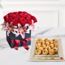 Indulge in the perfect blend of sweetness and elegance with our Sweet Harmony gift. Featuring the authentic Bikanervalas Balushahi, flawlessly crafted and delivered in a generous 500 grams, this treat is a token of love for those memorable occasions. Complemented by a vibrant flower arrangement that adds a touch of charm, this gift is sure to bring joy. Surprise your dear one with this exclusive offering available in Ahmedabad, and create a heartfelt memory that lasts.