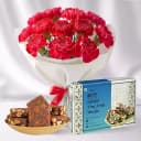 Celebrate your special moments with a delightful ensemble of Khajur Anjeer Bites paired with a stunning bouquet of 12 red carnations. This extraordinary gift from Kandoi Bhogilal Mulchand is an exquisite blend of taste and beauty, perfectly suited for expressing your heartfelt emotions. Each sweet bite, wrapped in richness, is complemented by vibrant blooms, making it a remarkable expression of affection. Available only in Ahmedabad, this set is designed to create enduring memories while satisfying the sweet cravings of your loved ones.