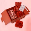This gift box contains: - 1 Pendant Necklace - 5 pcs Kit-Kat (28.5 gm) - 1 Small Red Teddy Celebrate the joy of giving with our Sweethearts Pendant N Chocolate Combo, featuring a stunning Pendant Necklace, 5 indulgent Kit-Kat chocolates (28.5 gm each), and an adorable Small Red Teddy. The Pendant Necklace adds a touch of elegance, making it a timeless accessory for any outfit or occasion. Indulge your senses with the delightful taste of Kit-Kat chocolates, each bite offering a perfect blend of crispy wafer and smooth chocolate. The Small Red Teddy adds a cuddly and charming touch to this carefully curated gift box, making it a perfect expression of affection and warmth. Whether its for a special celebration or a simple gesture of love, this ensemble promises to bring joy and create cherished memories. Share the love and sweetness of this thoughtful combination, capturing the essence of happiness in every element.