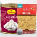 Love is best expressed by sending this gift of Tasty Haldiram Rasogula (500g) with Haldiram Bhujiya (200g) N Free Silver Plated Ganesh Laxmi Coin on Diwali to your near and dear ones.