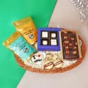This gift hamper contains: - A Pouch of Sweet and Spicy Trail Mix (100 gms) - A Pouch of Italian Trail Mix (80 gms) - 4 Cavity Chocolate Box (Oreo, Fruit and Nut, Butterscotch, Cranberry) - A Date and Walnut Tea Cake (400 gms) - 2 Pcs Almond Chocolate Rocks (12 gms each) - A Hot Chocolate Pinata (45 gms) - 2 Pcs Almond Florentines (26 gms each) Celebrate Dads special day with our Trail Mix N Chocolate Decadence Basket, brimming with gourmet delights to delight his palate. Indulge his taste buds with a pouch of Sweet and Spicy Trail Mix (100g) and the savory goodness of Italian Trail Mix (80g). Satisfy his sweet tooth with our 4 Cavity Chocolate Box, featuring tantalizing flavors like Oreo, Fruit and Nut, Butterscotch, and Cranberry. Treat him to a scrumptious Date and Walnut Tea Cake (400g), perfect for sharing cherished moments. Spoil him further with the rich crunch of 2 Almond Chocolate Rocks (12g each) and the exquisite taste of 2 Almond Florentines (26g each). And let him experience the thrill of our Hot Chocolate Pinata (45g), an adventure in every bite. Make this Fathers Day unforgettable with this carefully curated hamper, designed to show Dad just how much he means to you.