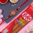 This is a gift of: - A Kundan Rakhi by Rakhi Sutra (PRRK7948) - Kitkat Share Snap Chocolate Bar (57g) - Complimentary Roli Tika N Chawal - Complimentary Message Card with Free Rakhi Celebrate the beautiful bond of sibling love with this charming Rakhi gift set that includes a Kundan Rakhi by Rakhi Sutra (PRRK7948), designed with traditional elegance and intricate detailing. This exquisite rakhi is a symbol of protection and affection, making it perfect for expressing heartfelt emotions. Paired with a delicious KitKat Share Snap Chocolate Bar (57g), the set brings a touch of sweetness to the occasion. Complimentary Roli Tika and Chawal are included to complete the sacred rituals of Raksha Bandhan, along with a thoughtful message card to convey your personal wishes. It’s a delightful combo of tradition and taste.