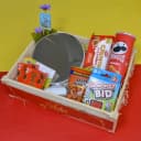 The hamper comprises of: - A Rakhi (Design Code: QURK048) - Personalized Magic LED Mirror - Pringles Original (107g) - Nutties (30g) - Tong Garden Salted Almonds (32g) - Crunch and Cream Wafers (75g) - Complimentary Roli, Tika & Chawal Thali - Decorated in a beautiful Tray - In a Reusable Signature Outer Box Celebrate the sacred bond of love with this thoughtfully curated Rakhi hamper that blends tradition with delightful surprises. The hamper features a charming Rakhi (QURK048), symbolizing the eternal tie of siblinghood, accompanied by a Personalized Magic LED Mirror that creatively doubles as a photo frame—your cherished memory comes to life at the touch of a button. Satisfy your snack cravings with a perfectly stacked can of Pringles Original (107g), the indulgent richness of Nutties (30g), Tong Garden Salted Almonds (32g) packed with flavor and health, and a pack of Crunch and Cream Wafers (75g) featuring irresistible almond, strawberry, hazelnut, chocolate, and vanilla flavors. Complementing the Rakhi ritual is a complimentary Roli Tika & Chawal Thali, adding traditional charm. All items are beautifully arranged in a decorated tray and presented in an elegant, reusable Signature Outer Box, making this hamper a perfect combination of festivity, flavor, and sentiment.
