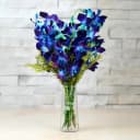 This flower arrangement is made of: - 12 Blue Orchids - A Vase Elevate your surroundings with the Vibrant Blue Orchids Arrangement, a stunning display of 12 vibrant blue orchids that exude elegance and charm. This striking arrangement is a true centerpiece, commanding attention and leaving a lasting impression. Each delicate orchid is carefully selected to ensure a perfect blend of color and form, creating a harmonious composition that is both captivating and enchanting. The beautiful blooms stand tall in a stylish vase, adding a touch of sophistication to any space they grace. Whether youre looking to brighten up your home or surprise a loved one with a luxurious gift, this bouquet is sure to evoke feelings of joy and admiration. Treat yourself or someone special to the beauty of these magnificent blue orchids and experience the enchanting allure they bring to any setting.