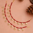 This is a gift of: - Red Beads & Kundan Anklets (Set of 2) Elevate your accessory game with the charming Vibrant Elegance Anklets Set. These anklets highlight stunning red Kundan stones artfully combined with beautifully crafted beads, all framed within a gold-plated setting that exudes luxury. The vibrant red shade adds an energetic and festive vibe to any outfit, making these anklets suitable for both special occasions and daily wear. Their eye-catching, intricate design ensures they will be a standout piece in your jewelry collection. Designed for versatility, these anklets can match a variety of styles, from traditional to contemporary. To keep them in pristine condition, spot-cleaning, separate storage, and avoiding fragrance and water are recommended. With the Vibrant Elegance Anklets Set, add a touch of refined grace and vibrant energy to your ensemble.