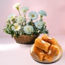 Embrace tranquility with this gorgeous gift set that brings together the beauty of 6 lovely white carnations and 6 sophisticated white gerberas. Their serene presence radiates a calming atmosphere, ideal for those moments that call for elegance and serenity. The sweet notes of their fragrance enrich the air, ushering in a sense of peace and charm. Complementing the floral arrangement is a delightful 1-kilogram serving of Ajmri Kalakand, famed for its smooth, creamy texture and exquisite sweetness. This perfect fusion of botanical beauty and gourmet indulgence makes it an impeccable choice for commemorating life’s precious events or indulging in a luxurious treat. (Only Available at Bangalore)