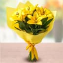 This bouquet is made of: - 5 Yellow Lilies Create a lifelong impression upon the ones you adore by gifting them this Happy Birthday Silky-Smooth 5 Yellow Lilies Bouquet that clearly conveys how much you love them.