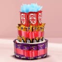 Create magical moments on this Christmas by ordering online this Yummy 3 Tier Choco Arrangement for your loved ones and spread your warm feelings into their hearts. This Arrangement features 12 Cadbury Dairy Milk (13 gms each), 12 Cadbury Five Star (22 gms each) and 10 Nestle Kitkat (13 gms each).