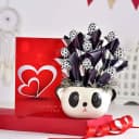 This valentine gift combo contains: - 9 Pcs Homemade Chocolates - Ceramic Panda Planter - A Valentines Day Card Nurture the love that blooms between you and your partner with a gift that captures the essence of Valentines Day. Our gift combo includes 9 pieces of mouthwatering homemade chocolates, each bite a declaration of your affection. To add a touch of whimsy, we have included a whimsical ceramic panda planter that symbolizes the growth and beauty of your relationship. This gift is a memorable way to celebrate your love and create lasting memories on Valentines Day.